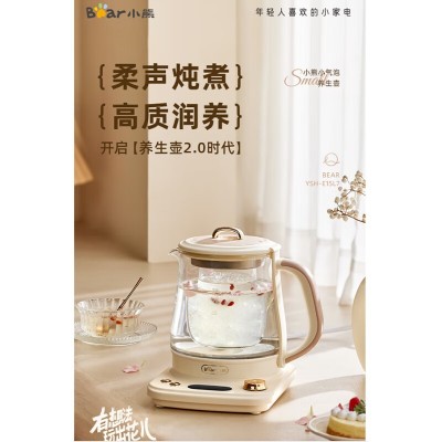 小熊小气泡养生壶 烧水壶 1.5升家用恒温水壶煮茶器煮茶壶 降噪涂层 带玻璃炖盅 YSH-E15L7 玻璃花茶壶 SKU:yzwhyp300447