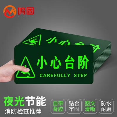 首页 > 电气设备 > 发光标志、铭牌 > 鸣固 安全出口地贴 指示牌消防安全疏散通道夜光标识贴纸 小心台阶 SKU:yzwhyp300553