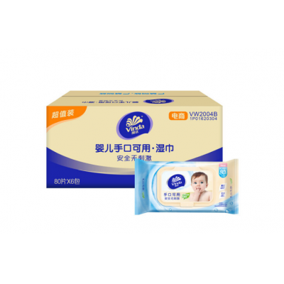 维达(Vinda)湿巾 婴儿湿巾纸VW2004B手口湿巾80片/包*6包装 SKU:yzwhyp100432