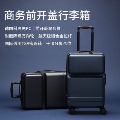 京东京造 前开口PC行李箱男女20英寸 前开盖万向轮拉杆箱登机箱 湖墨蓝 SKU:yzwhyp200335