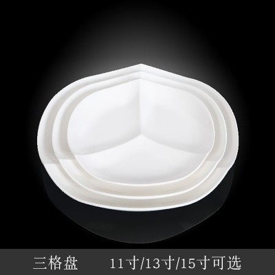 首页 > 用具 > 其他厨房用具 > 台顺密胺餐具3864-11 11寸三格盘5个起售 SKU:yzwhyp301107