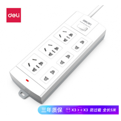 得力3982插座_3+3_5米_泡壳装(白)(只) SKU:yzwhyp101330