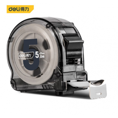 得力DL270525T 透明钢卷尺盒尺伸缩尺拉尺5mx25mm SKU:yzwhyp301735