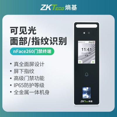 ZKTeco/熵基科技nFace260动态人脸指纹识别考勤门禁机 毫秒级IP65防水高级门禁打卡一体机 SKU:yzwhyp101403