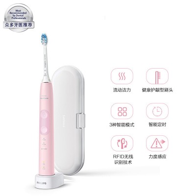 飞利浦电动牙刷成人情侣款 送礼物 健康护龈 力度感应 含牙刷盒3种模式6倍清除牙菌斑 粉色小美刷HX6856 SKU:yzwhyp200850