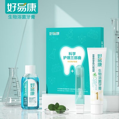 好易康 专业口腔护理三部曲组合装漱口水50ml+折叠牙刷+牙膏50g SKU:yzwhyp200892