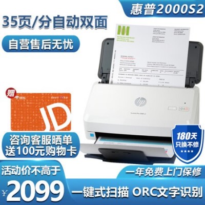 HP ScanJet Pro 2000s2 馈纸式实惠普通A4高速高清快速连续自动双面办公用文档扫描仪 35ppm/70ipm SKU:yzwhyp101808