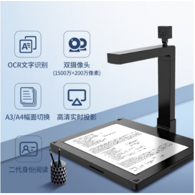 汉王DS-1500 S3 高拍仪双摄像头1500万+200万像素A3/A4幅面OCR文字识别 SKU:yzwhyp101929