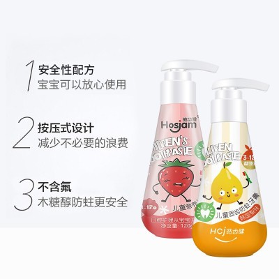 皓齿健(Hosjam)3-12岁儿童牙膏套装240g(草莓+韩国梨)科学含氟防蛀固齿 SKU:yzwhyp201172