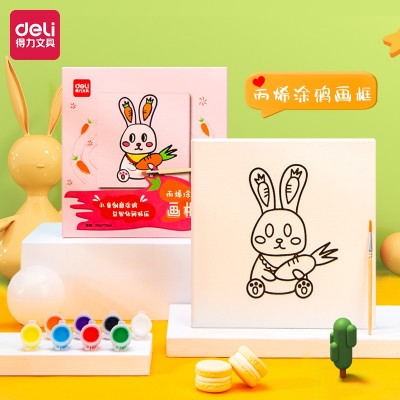 得力73904-2_丙烯涂鸦画框(兔子)(混)(套)幼儿绘画涂色玩具 手工DIY自制画框 绘画套装 SKU:yzwhyp303202