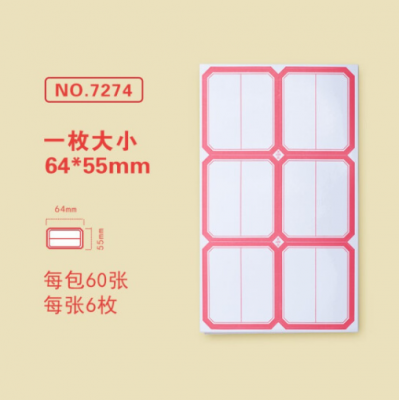 金隆兴7274-2标签贴纸 自粘性口取纸 6枚/张 60张/包 64*55mm 分区式红色 5包装 SKU:yzwhyp102400