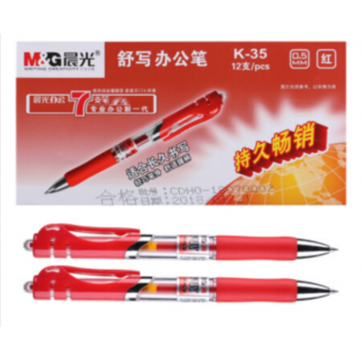 晨光(M&G)K35红色0.5mm中性笔按动签字笔12支/盒 SKU:yzwhyp304355