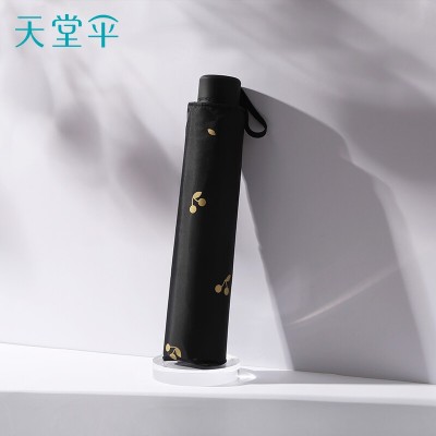 天堂伞 便携黑胶遮阳太阳伞防晒防紫外线三折叠雨伞女晴雨两用 30750EVIP三折琳琅 黑色 SKU:yzwhyp304610