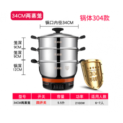 志高(CHIGO) JBL-ZHDG加厚电热锅电锅多功能炒煮一体锅家用电炒锅电蒸锅电火锅电煮锅多用途 34cm两蒸笼 SKU:yzwhyp103407