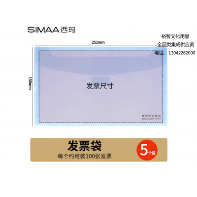 西玛(SIMAA)5个装 发票袋/增值税发票套/文件袋蓝 9611 SKU:yzwhyp103691