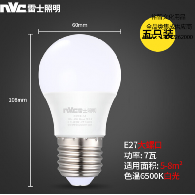首页 > 建筑建材 > 电工电料 > 雷士 (NVC )E-NLED0037W-6500K LED灯泡球泡 大功率光源 高亮节能 7瓦白光6500K E27(5只装) SKU:yzwhyp305347