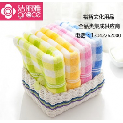 洁丽雅 (GRACE) 0065 纯棉 68*32cm 82克 格子 绿黄红蓝 颜色随机 SKU:yzwhyp305752