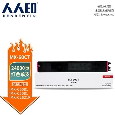 首页 > 办公用品 > 墨粉盒 > 人人印 MX-60CT粉盒红色 适用夏普SHARP MX-C2621R C3121R C3081R C3581R C4081R 5081D 6081D SKU:yzwhyp306110