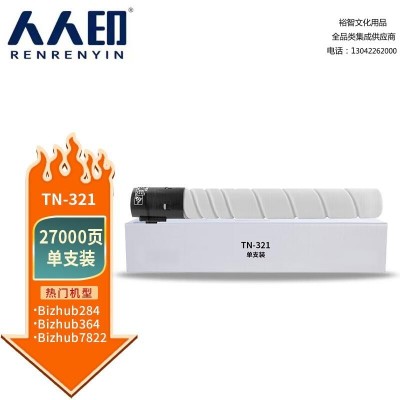 首页 > 办公用品 > 墨粉盒 > 人人印 TN321粉盒黑色 适用柯尼卡美能达C364 C284 C224 C7822 C7831墨盒C221S C281 C7128 C227碳粉 SKU:yzwhyp306238