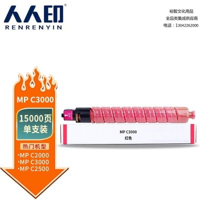 人人印 MP C3000粉盒红色 适用理光Aficio MPC2000 MPC2500 MPC3000复印机粉筒 SKU:yzwhyp306287