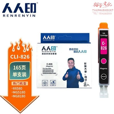 首页 > 办公用品 > 喷墨盒 > 人人印CLI-826墨盒适用佳能 PGI-825 红色墨盒IX6500 IP4980 4880 MG6280打印机墨盒5180 IX6580 MX888 SKU:lfhc500774