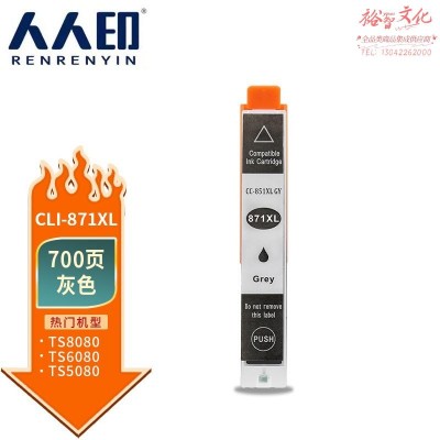 首页 > 办公用品 > 喷墨盒 > 人人印 CLI-871XL灰色墨盒适用佳能MG5780 MG6880 MG7700 MG7780 TS5080 TS6080 TS9080打印机墨粉盒 SKU:yzwhyp306883