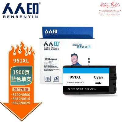 人人印 951XL C 蓝色墨盒 适用惠普Officejet Pro 8100/8600 Plus打印机墨盒硒鼓粉盒 SKU:lfhc500845