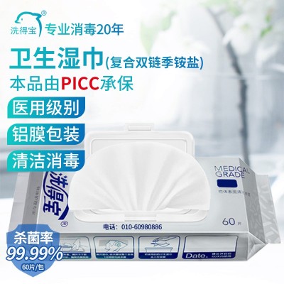 洗得宝 消毒除菌湿巾 60片 SKU:yzwhyp201494