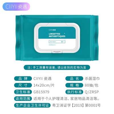 瓷遇Ciiyii杀菌湿巾80抽 杀菌洁肤卫生纸品湿纸巾带盖 SKU:yzwhyp201502
