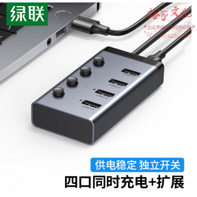 绿联 USB3.0分线器90874 一拖四口高速扩展坞 笔记本电脑接硬盘键鼠集线器 四口HUB延长线拓展坞 5V2A供电 1米 SKU:yzwhyp600285