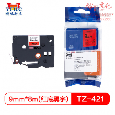 扬帆耐立 标签带 标签纸色带 适用兄弟标签机色带 9mm红底黑字 TZ-421 SKU:yzwhyp104574