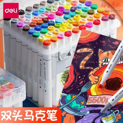 得力(deli) 马克笔彩色双头学生套装彩笔水彩全套美术生专用动漫色 专业款48色 70803 SKU:yzwhyp201837
