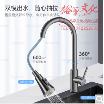 首页 > 建筑建材 > 五金附件 > 荣事达(Royalstar)厨房冷热水龙头304不锈钢抽拉枪灰色龙头水槽洗菜盆龙头R103101H SKU:yzwhyp309942