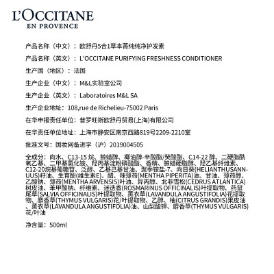 欧舒丹5合1草本菁纯纯净护发素500ml柔顺水润控油蓬松新年礼物 SKU:yzwhyp202008
