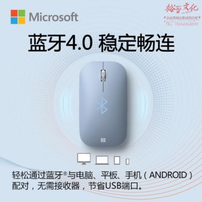 微软 (Microsoft) 时尚设计师鼠标 精灵蓝 便携鼠标 超薄轻盈 金属滚轮 蓝牙4.0 蓝影技术 办公鼠标 SKU:yzwhyp311107