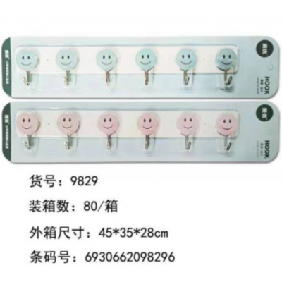 长粘钩6勾9829 门后挂衣架挂钩强力粘胶壁挂浴室墙上承重挂衣钩
