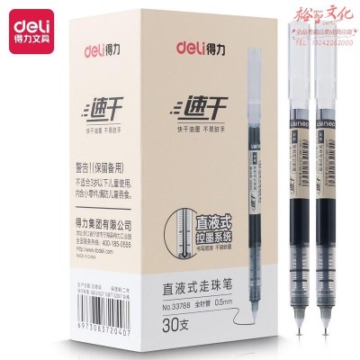 得力(deli)33788速干直液笔签字笔 0.5mm全针管中性笔 黑色 30支/盒(盒) SKU:yzwhyp601643
