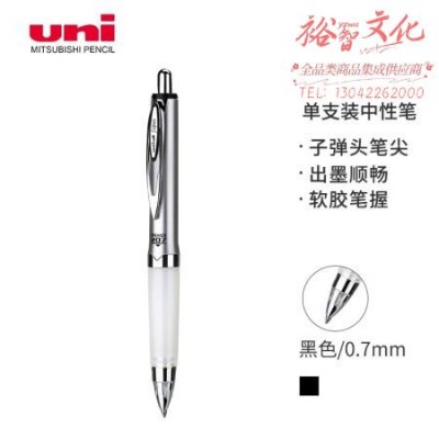 三菱(Uni)按动中性笔学生考试办公签字笔软胶笔握UMN-207GG 银色笔杆 黑色 1支装 SKU:yzwhyp601801